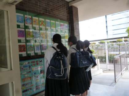 そして、30分前に全員学校を出ました。玄関には2年生が1年生の時に作成した美術の作品が展示されています。