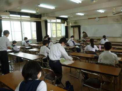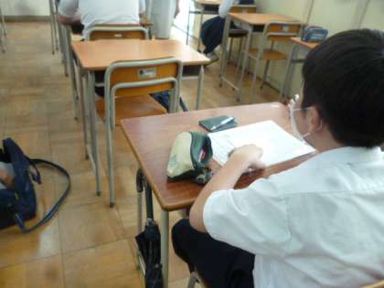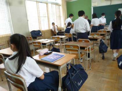 4教室に分かれて、健康観察表の点検と提出物の回収が始まりました。