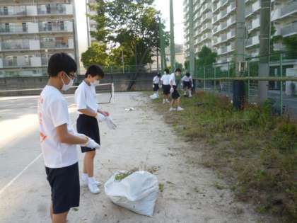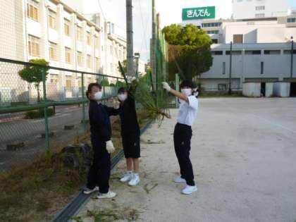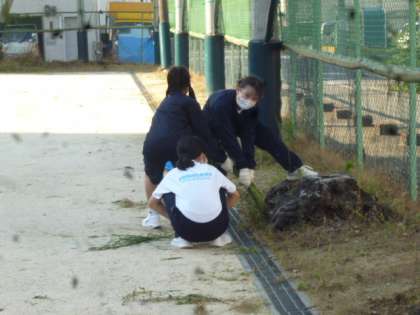 テニス部は、雑草刈りから始まりました。
