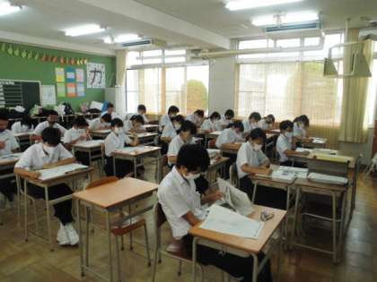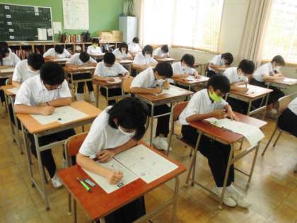 今日は、3年生は実力テスト、1・2年生は課題テストがありました。