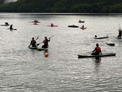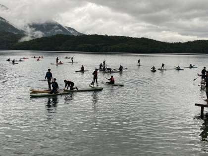 青木湖ではSUPとカヌーが取り組みをしていました。