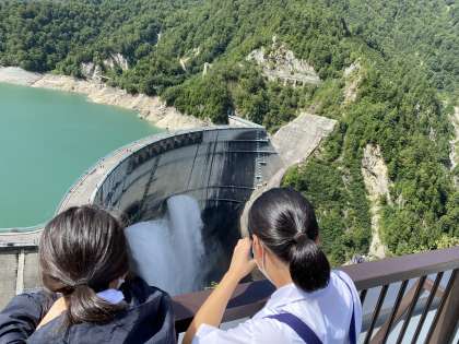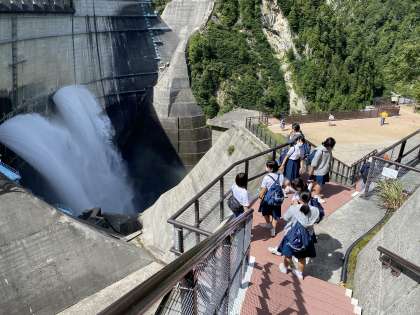 ダムからの放水をいろんな場所から眺めたり、えん堤を端から端まで歩いたり、思い思いに過ごしました。