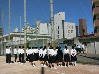 昼休みに3年生は人文字の撮影や合唱のパート練習をしていました。