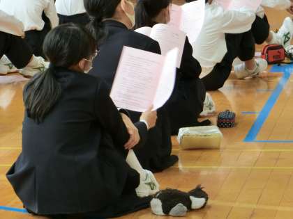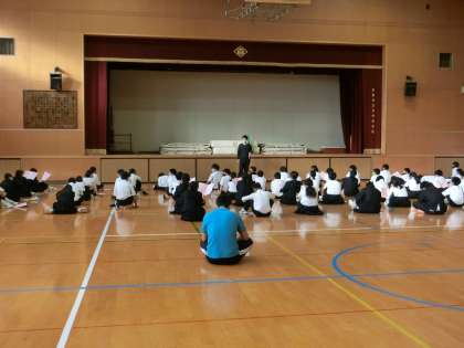 6時間目に体育館で校外学習の事前指導がありました。
