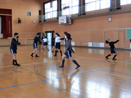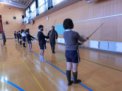 最初は竹刀を持たずに、つづいて実際に竹刀をもって練習しました。