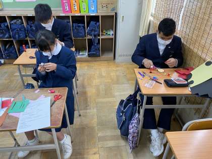 2学期最後の英語の授業で、先日から作成しているクリスマスカードが完成しました。