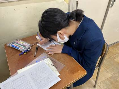 実力テストの後ですが、6限は卒業文集の清書をしました。