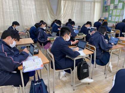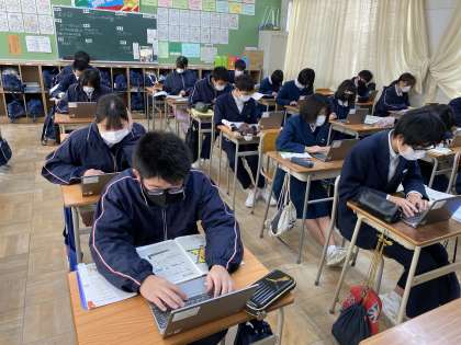 技術の時間に、一人一台端末を使ってレポート作成をしました。