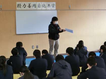 3年生は明日の私立入試に向けての前日確認や、学年の先生からのお話がありました。