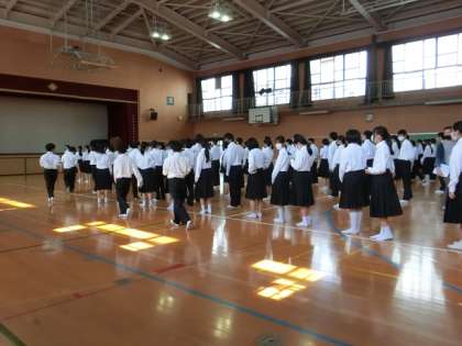 14日(金)、6時間目に防災訓練を行いました。地震後に、津波警報が発令されたことを想定して行われました。