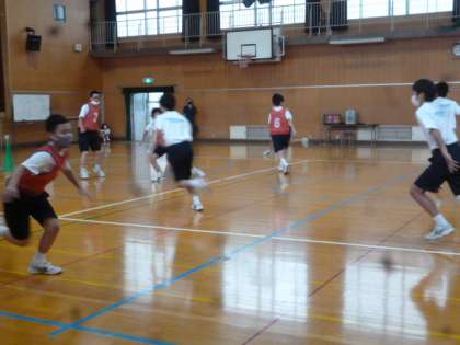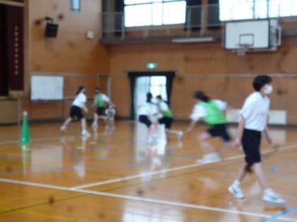 21日(金)、6時間目、3年生が体育館で「スポーツ鬼ごっこ」をしていました。