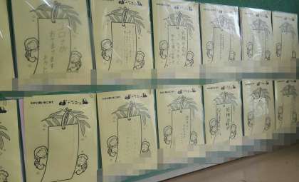 教室の後ろにお願いごとがずらり。壁面短冊です。