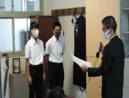 始業式に先立って、校長室では、この夏休み期間中に大躍進した