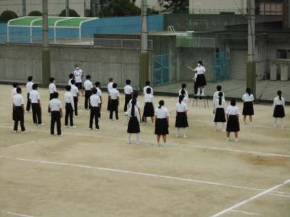 豊崎中学校の広いグラウンドには、1年生と2年生の姿がありました。