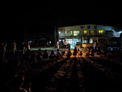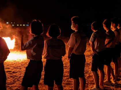 浜辺でキャンプファイヤー。爽やかな風、とてもいい気候です。