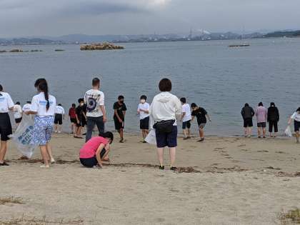 その後、波打ち際でごみ拾い?