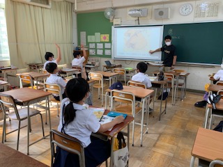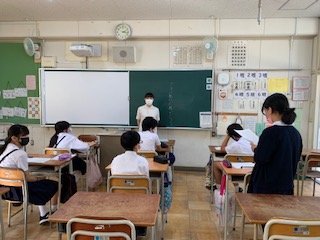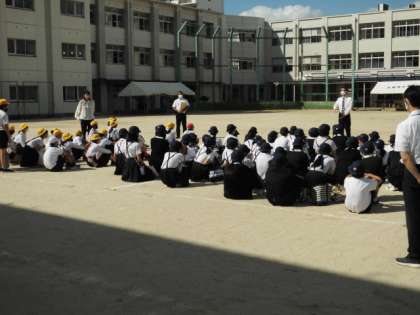 最初にグランドに集合し、中学校長先生よりあいさつがありました。