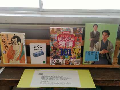 図書室前に 落語に関する本を並べてみました。