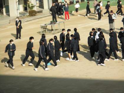 避難指示が出たあと、決められたルートを通り、教室からグラウンドへ出ます。