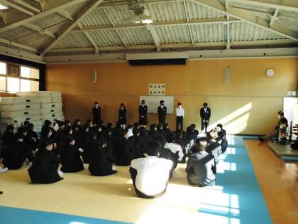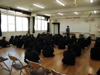 本日は3時間目までの授業を終え、4時間目は各学年が、それぞれの場所で学年集会を行っています。