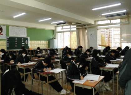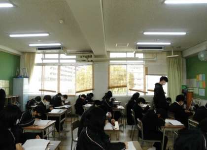 本日の豊崎中学校では、1年生と2年生が『チャレンジテスト』を行っています。