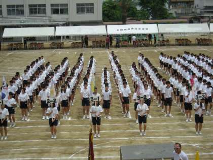 いよいよ体育大会が近づきました。本日は予行です。本番さながらに臨んでいます。