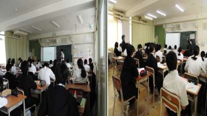 1組は国語、2組は家庭科の授業をおこなっていました。