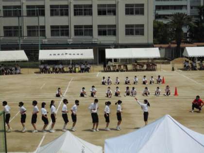 本日はじめての、学年競技は2年生。『大縄跳び』です。