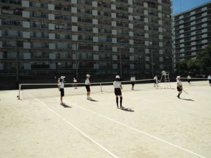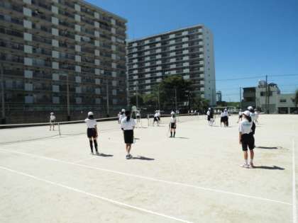 ラケットを使ってボールを打ったり、アップをしたりしました。