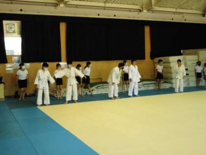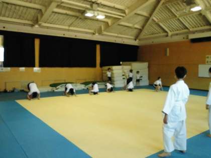 受け身や投げ技、基礎となる筋力のトレーニングを体験しました。