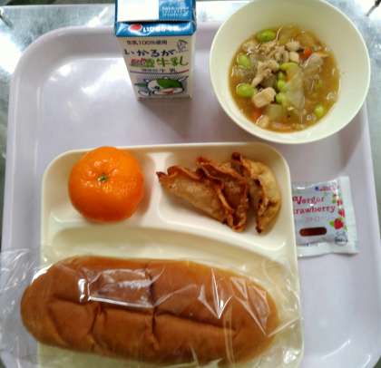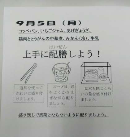 今日の給食カレンダーには『配膳』(はいぜん)について書いてあります。