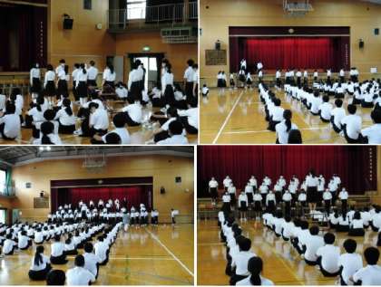 20日火曜日の6限目に、体育館で全学年そろってのリハーサルをおこないました。