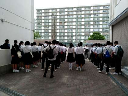 3時間目まで授業を受けたあと、早めの昼食をとり準備をして出発します。