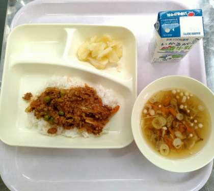 牛ひき肉や豚ひき肉などをいためて味つけした具をご飯にかけてたべます。