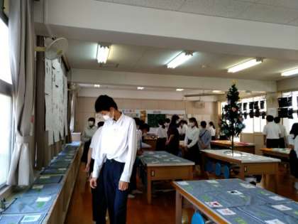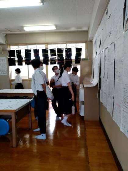 1年生から3年生まで、各学年の家庭科の授業で作成した作品と、夏休みの課題などを展示していました。