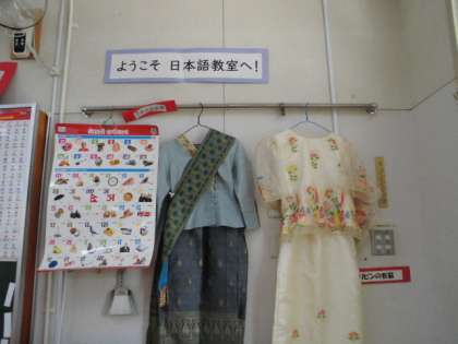 1年学習室では、日本語教室による『いろいろな国の衣装と楽器』の展示がありました。
