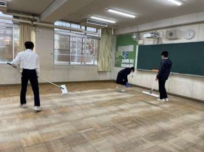 12日の放課後は、各クラスの教室の床にワックスをかけました。