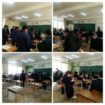 写真は1年生2年生ともに、テストが終わって解答用紙を集めているところ。教室の様子です。