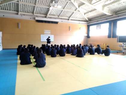 公立高校受験者は、教室で願書の最終チェックをした後、格技室へ集合しました。