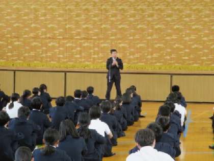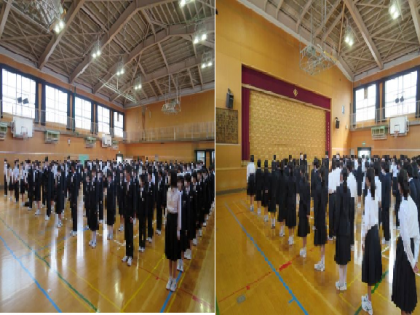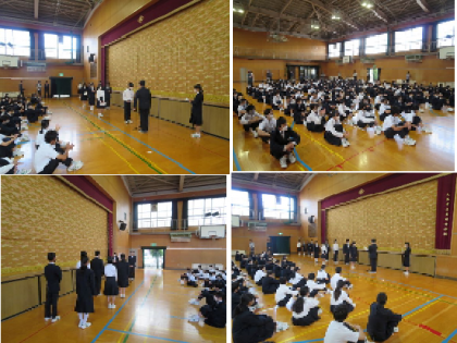 連休明けの月曜日、体育館にて全校集会をおこないました。