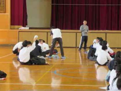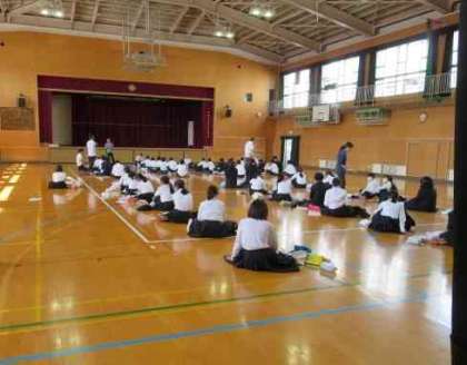 その一泊移住の事前準備として、本日6限目に体育館で荷物の確認をおこないました。