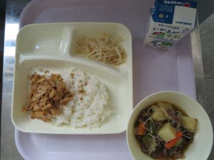 給食は、本日も楽しくおいしくいただきます。午後からも頑張って授業に励みましょう。