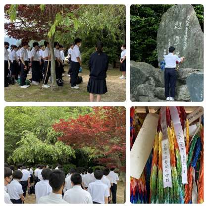 学習のまとめに慰霊碑の前で平和セレモニーを行いました。