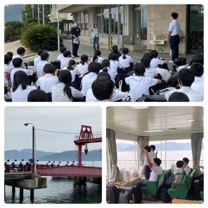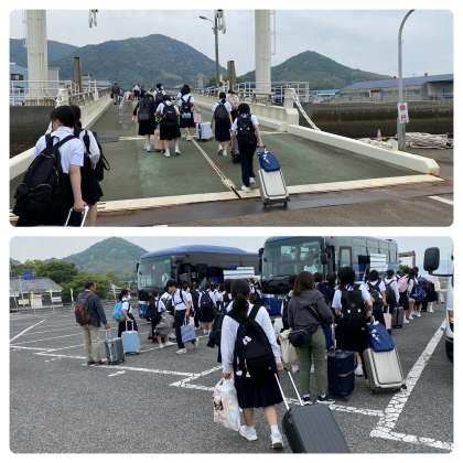 休暇村でカツカレーをいただいた後、退館式を行い、フェリーに乗船