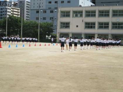 本日の6限目に 1年生は体育大会へむけて学年練習を行いました。