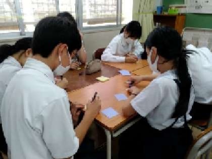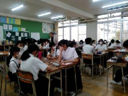 班ごとに分かれ、ゲームをしています。結果に一喜一憂。