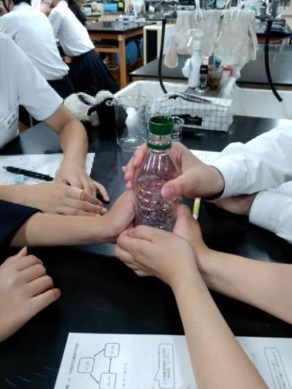 大阪高校で実際の授業のなかで行っている理科実験と講義を体験しました。