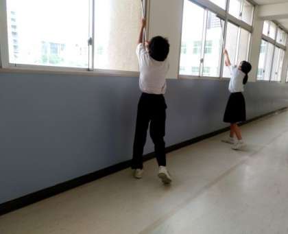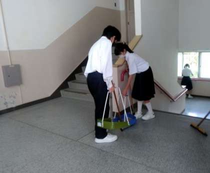 集会のあと、校内を一斉にみんなで清掃をおこないます。