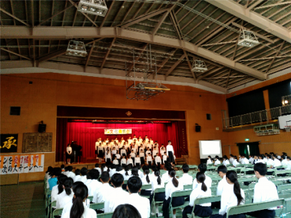 本校から巣立ち、これからそれぞれの進路へ進む3年生にぴったりの曲でした。