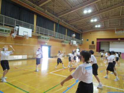 バレーの授業ではアンダーパス、オーバーパス、スパイクを行い、随時良い手本となる生徒を注目させ、褒めることで生徒のモチベーションが高まり、常に良い雰囲気が醸されていました
